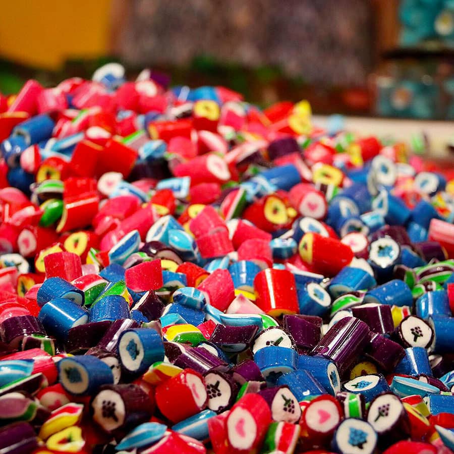Every day, our candy artists twist, pull and shape molten sugar into beautiful handmade rock candy — right before your eyes.